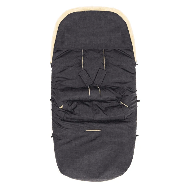- Dankzij de lange gordelsleuven aan de achterkant past de voetenzak in alle gangbare kinderwagens.